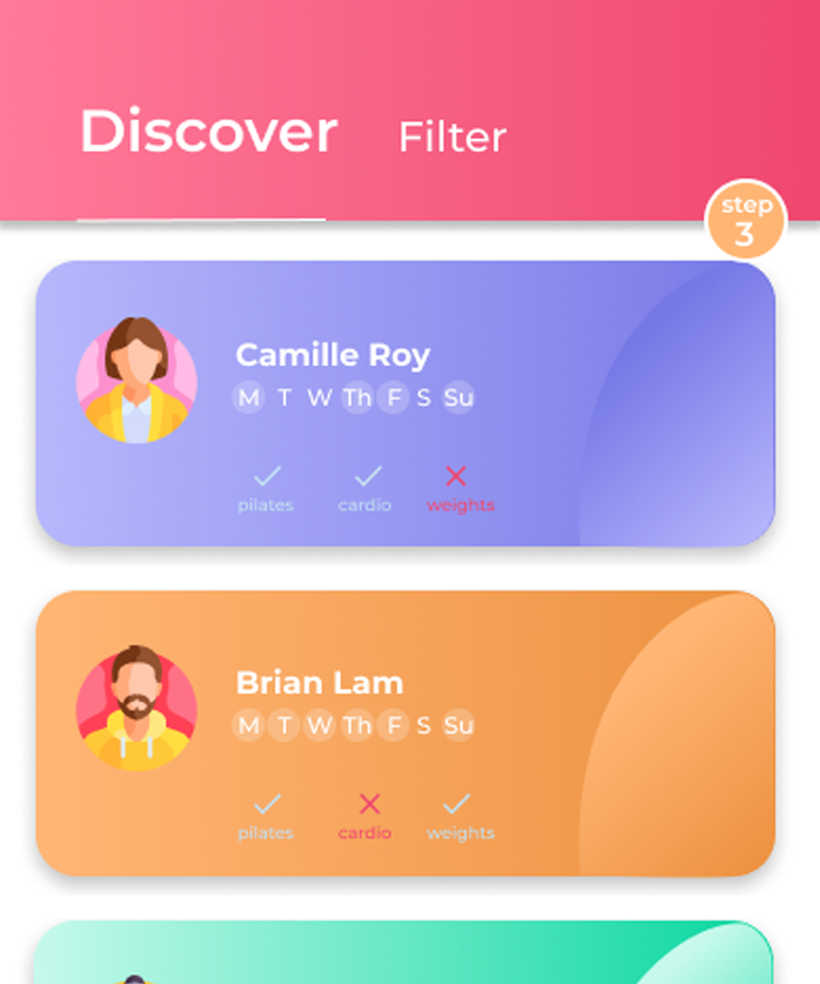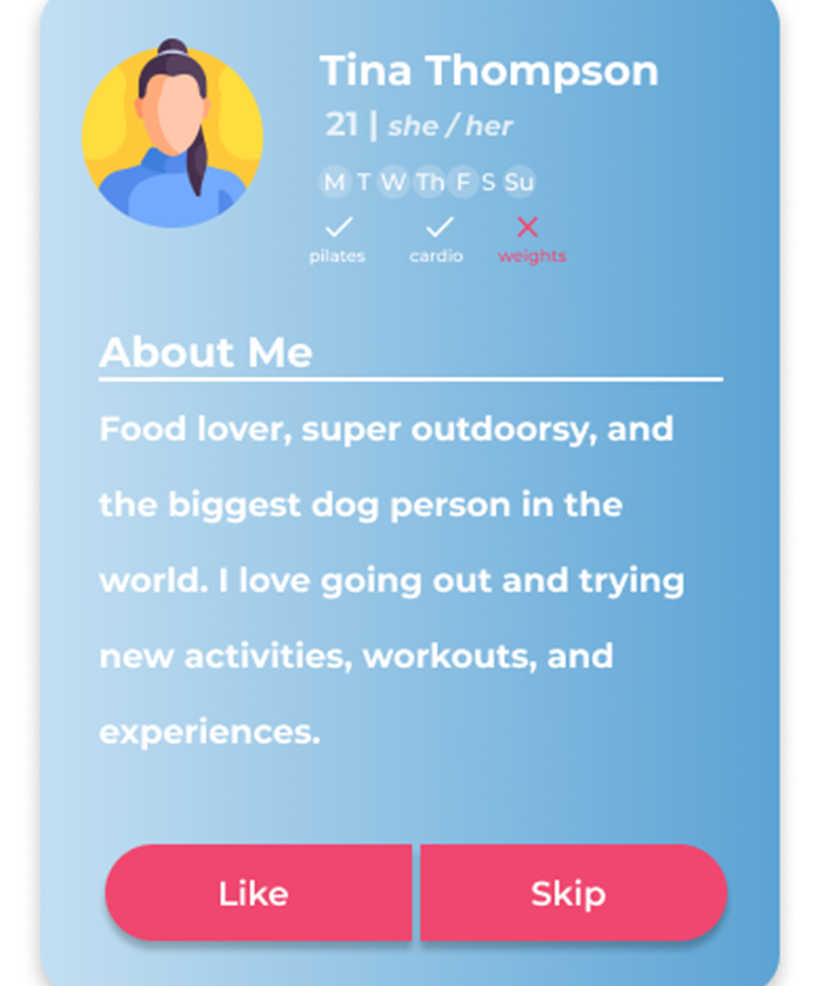 Designing a mobile app that helps users find compatible workout partners based on fitness goals, schedules, and location to reduce intimidation and increase accountability.