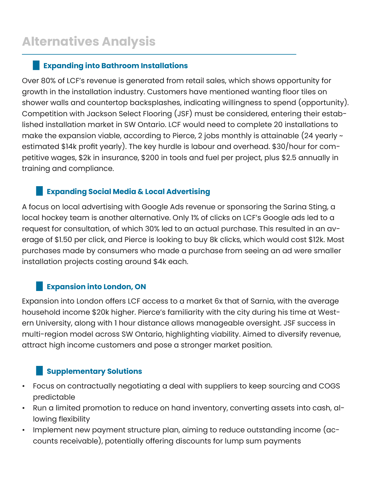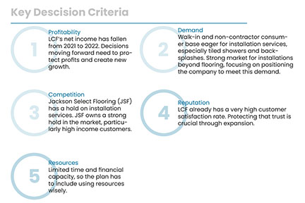 Lambton Custom Flooring (LCF) is a family run flooring retailer and installer based in Sarnia, Ontario. Following a period of declining profitability despite rising revenue, the business faced a strategic crossroads. Rising operating costs, shifting customer demand, and increasing competition forced leadership to reconsider how the company should grow and stabilize long-term profitability.